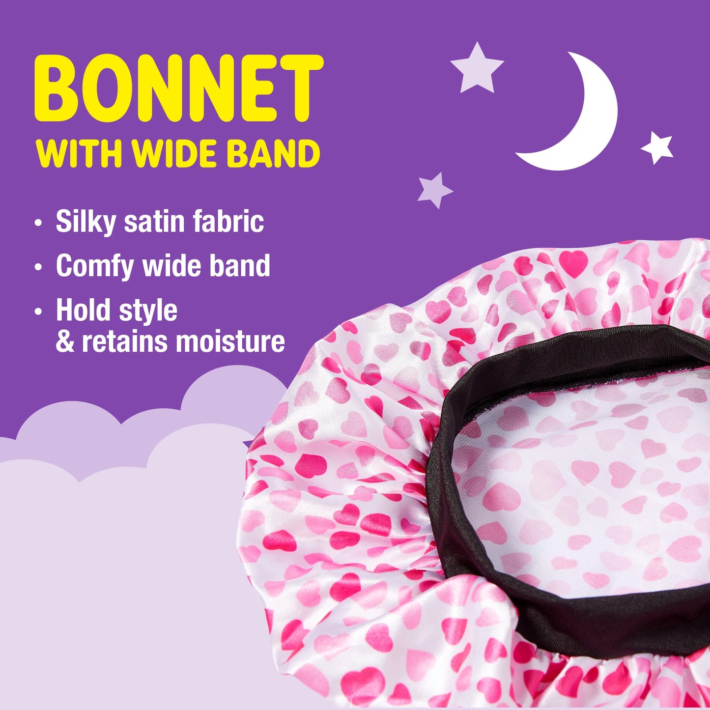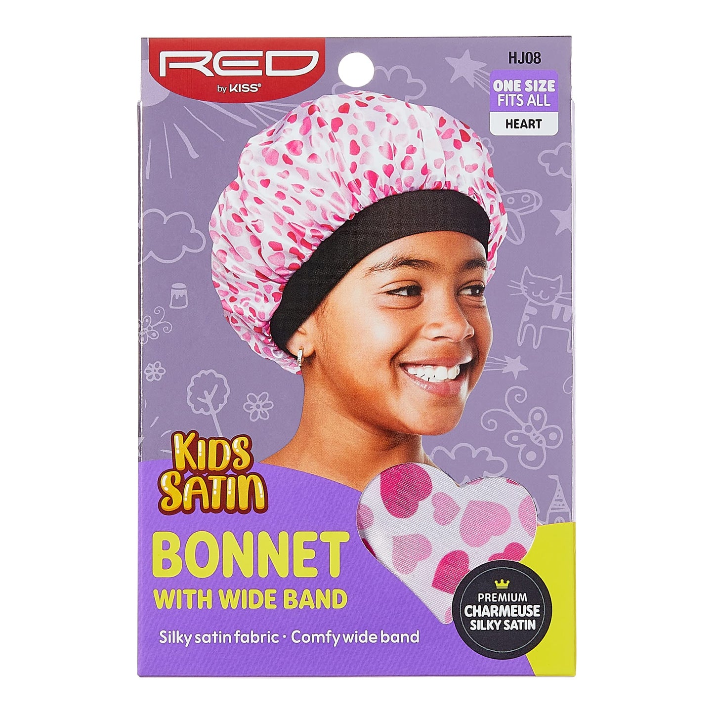 Red by Kiss Kids Satin Bonnet with Wide Band, Sleep Cap for Kids, Bonnet for Boys and Girls (Heart)